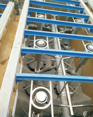 2.反抽吸+排泥系統:其中纖維豎片濾布系統包括專用纖維濾布、濾布支架和集水管。反抽吸裝置采用桁車線性移動式抽吸,經過抽吸后的截面可迅速進入正常過濾狀態,無需存儲抽吸用水,工作流程如下: